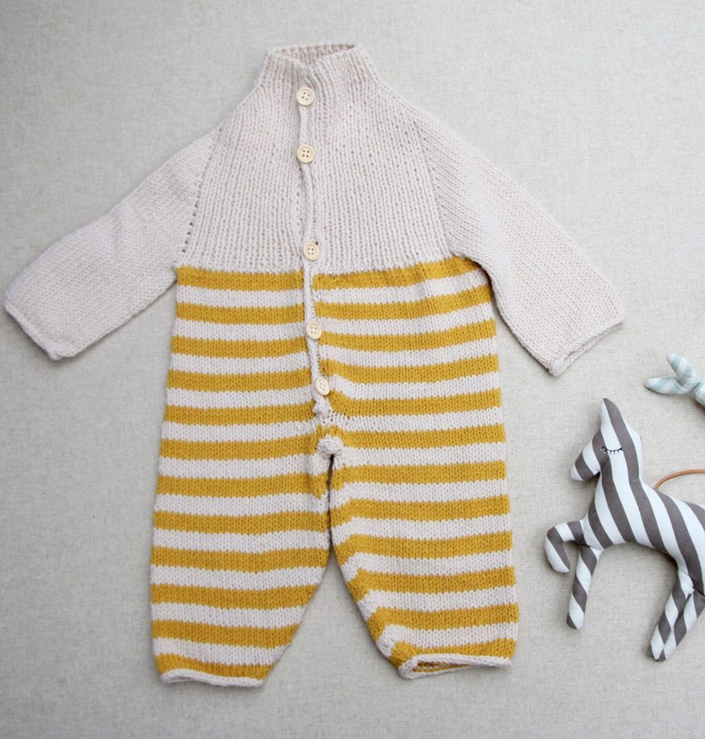 Enda et superkjekt plagg i Pickles Mjuk Merino. Denne heldressen er smart konstruert med ribb som sitter godt på overkroppen, og god vidde rundt baken. Den har striper, som er underholdende å strikke og som gjør at man kan bruke litt moro farger!