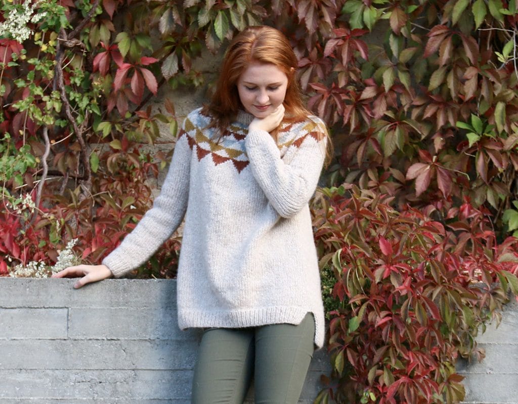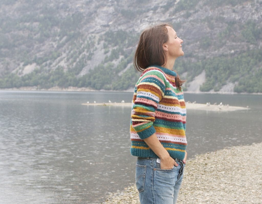 Kanskje ikke det mest sommerlige plagget på denne listen, men vi elsker det grafiske vimpelmønsteret, og genseren er jo perfekt til å leke med nye farger. Vi får bruk ut av genserene våre i Cozy også sommerstid vi!