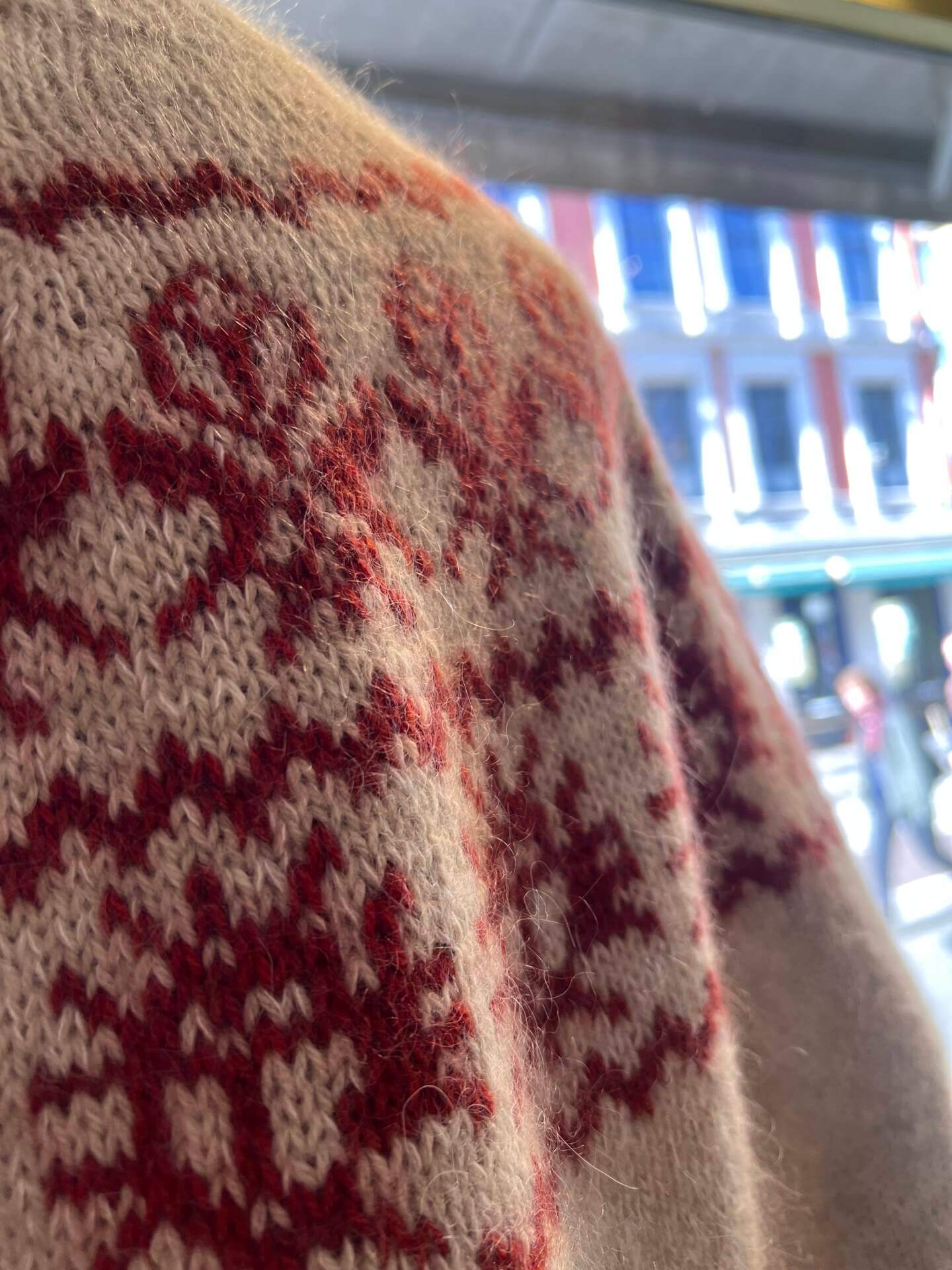 I met her at a knitting event at Vestlia Resort, where she got to know Pickles Pure Wool for the first time. She fell in love with the yarn and has since knitted up some of her own favorite garments, which are now on display in our window.
