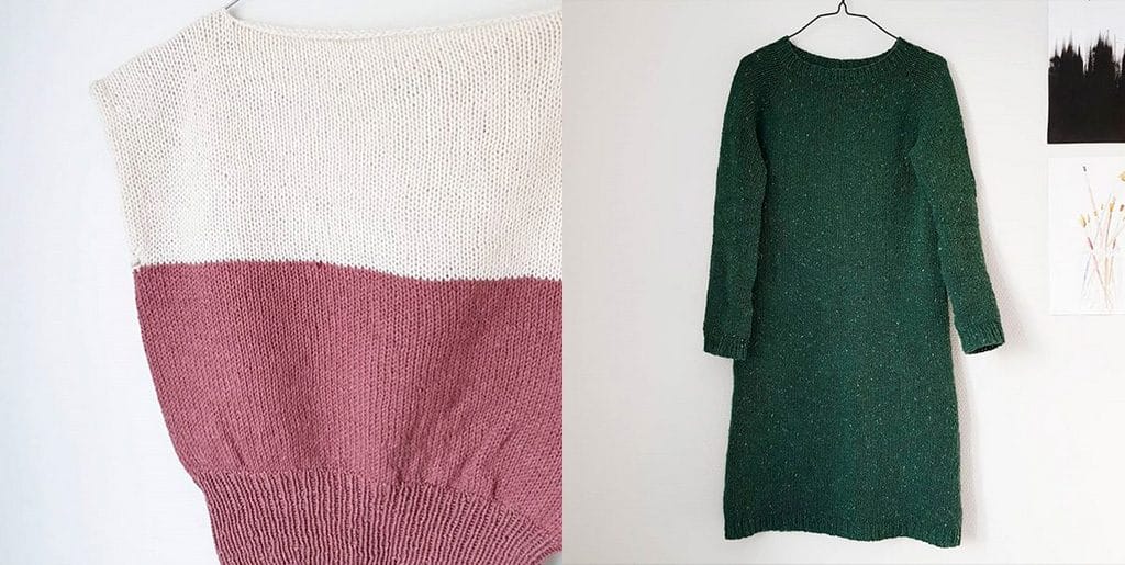 Det står mellom Dagnykjolen og Perfekt Ribbegenser, begge i favorittgarnet Pickles Merino Tweed. En ullkjole er jo egentlig bare en kjempeullgenser som tilfeldigvis ser fjong ut, det blir ikke bedre en det! Topp Notch har også fått masse bruk, til alle sesonger.