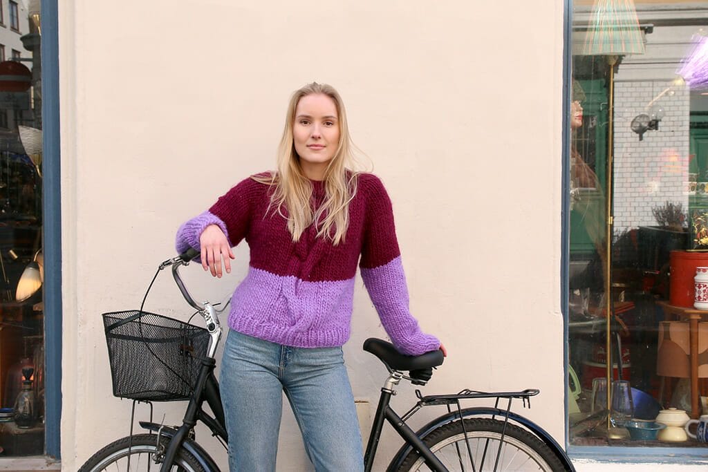 Enda en versjon av Tykk, her med flette of fargeblokk i lillatoner. Yum!