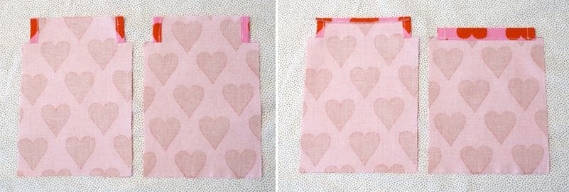 4: Brett posen så sidene kommer på midten, sy en søm over hvert hjørne og klipp av.